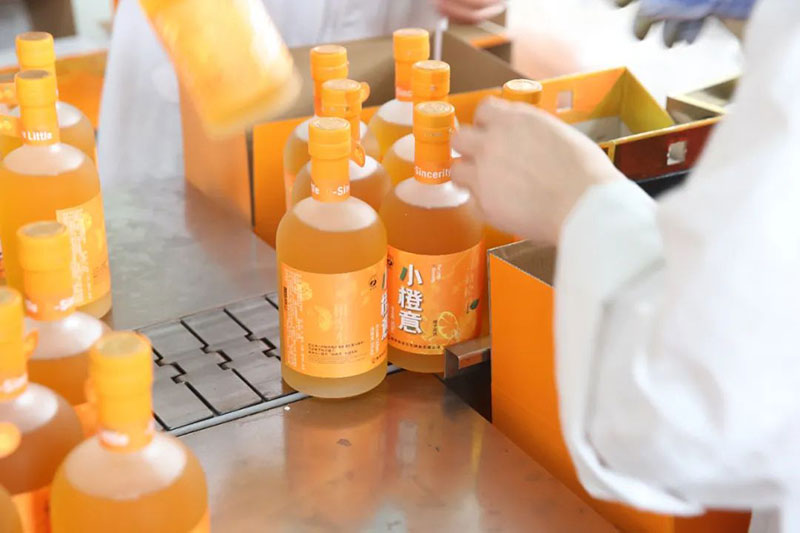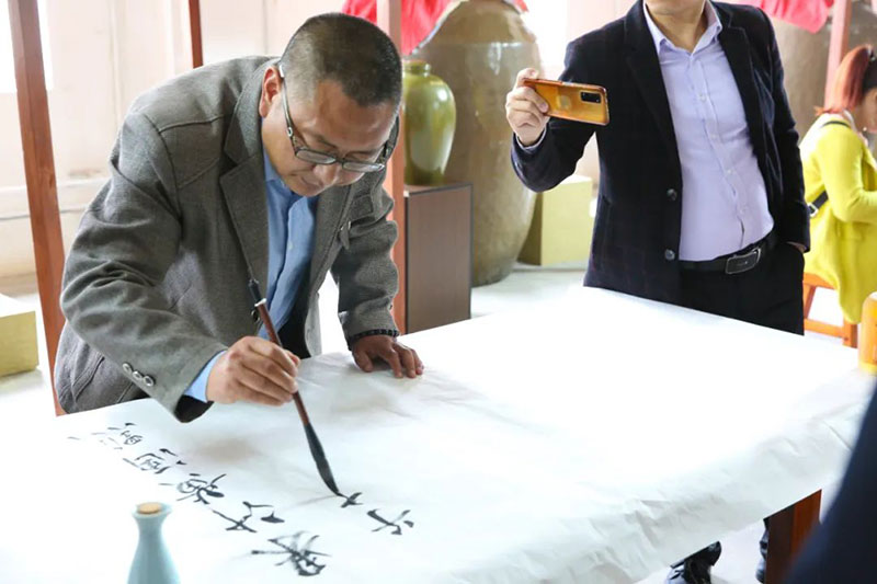 参观过程中,公司讲解人员给客人们讲解了古秦洋酒、谢村黄酒的历史文化、生产工艺及产品特点,并邀请客人们现场品尝了公司封藏了40余年的原浆酒及刚压榨出来的原汁谢村黄酒及刚从生产线上灌装出来的谢村小橙意橙味黄酒,使大家对古秦洋酒、谢村黄酒,特别是对谢村小橙意橙味黄酒有了更为直观深刻的了解和认识。协会成员串剑博饮罢谢村小橙意橙味黄酒,挥毫赋诗赞曰:果汁黄酒点子高,融通古今掀新潮。一片橙意相聚时,人生如意乐陶陶。