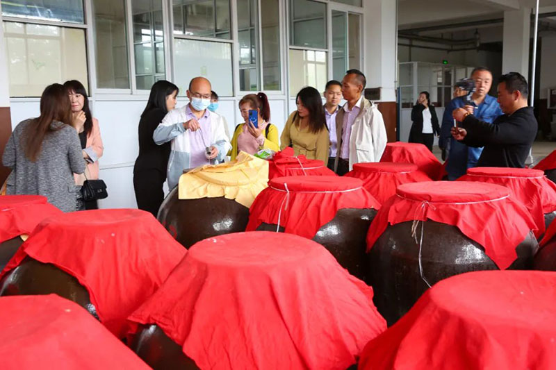 活动过程中,来访的洋县新媒体达人们,参观了秦洋名酒馆、地下酒库、白酒酿造车间、制曲车间、黄酒发酵车间、谢村黄酒传统工艺传习所、黄酒成装车间、抖音直播间等部门。