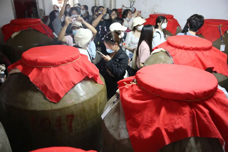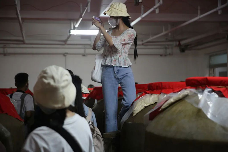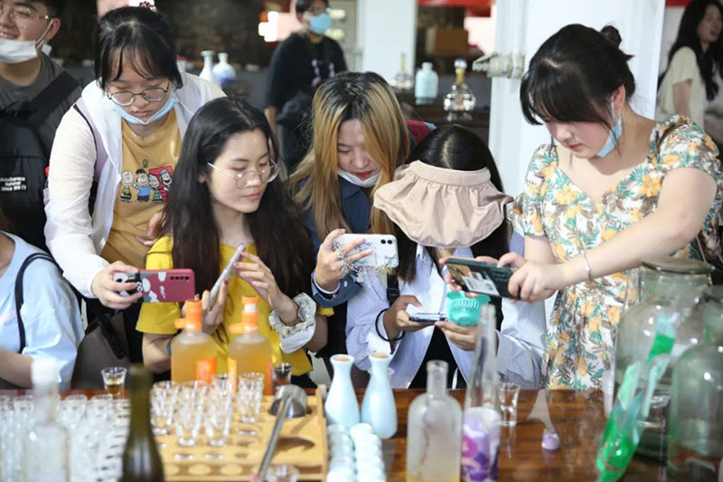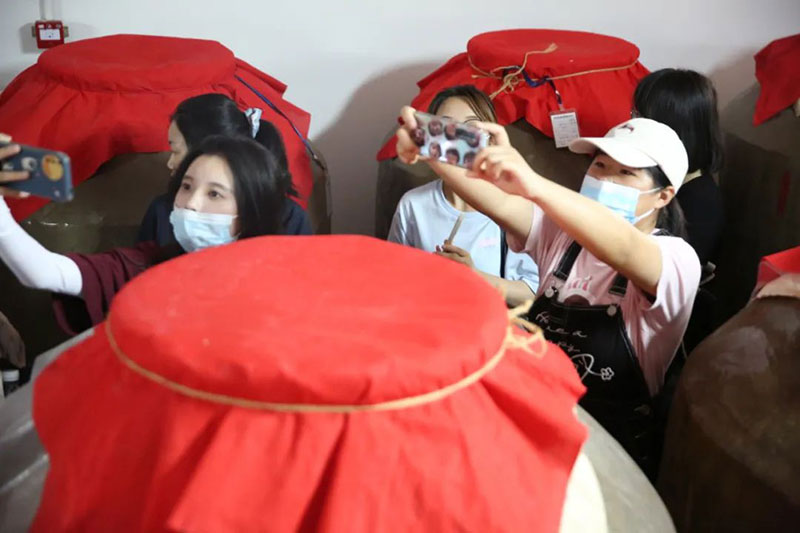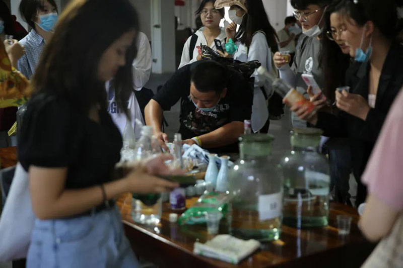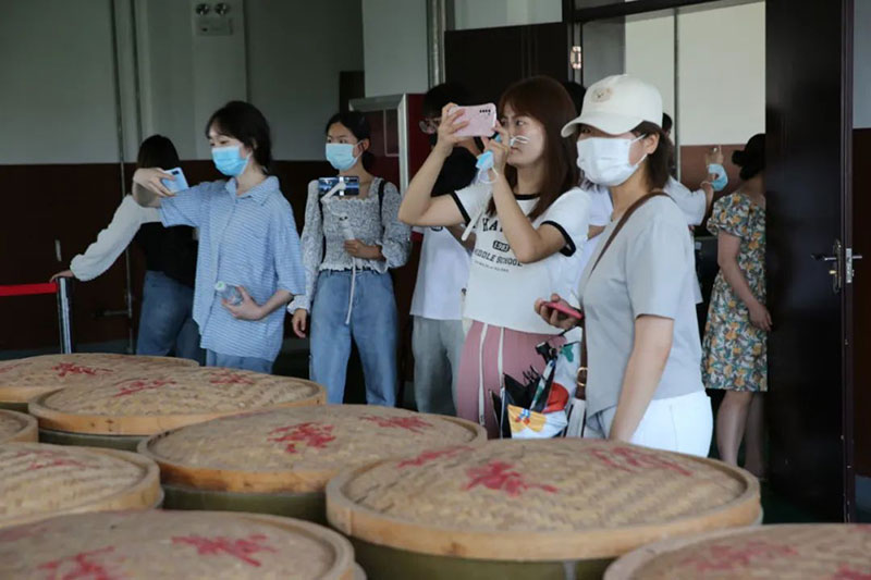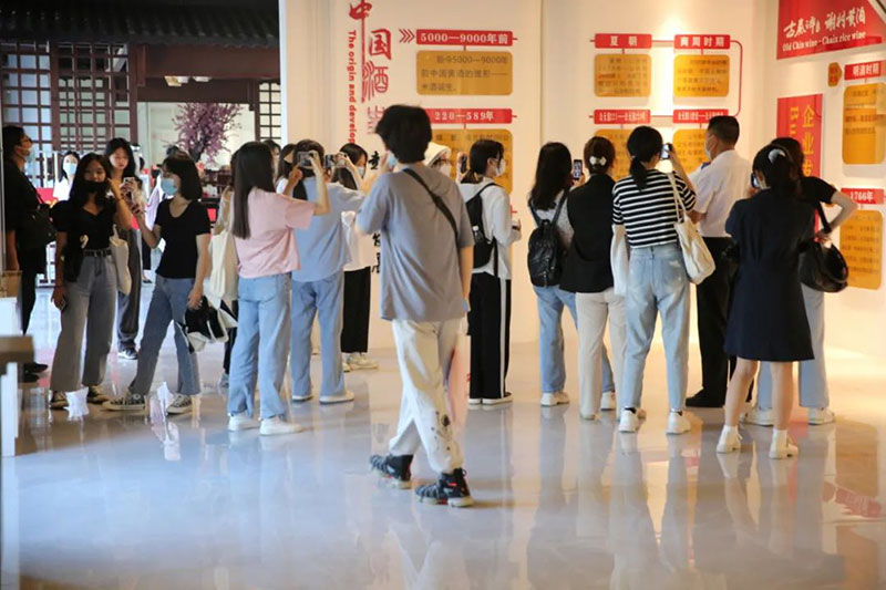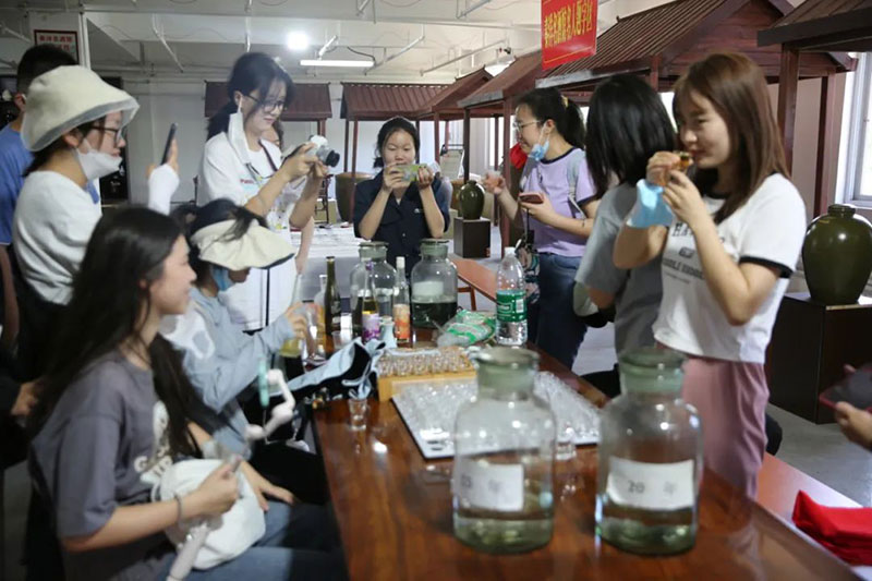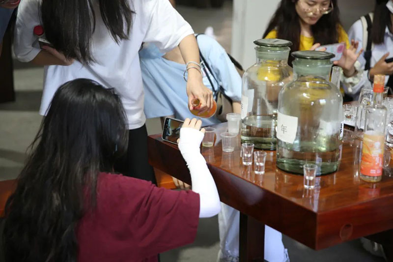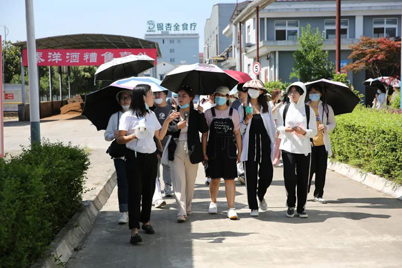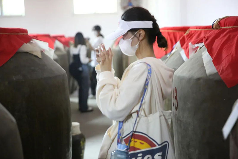 实践活动中,师生们参观了公司展销大厅、秦洋厂史馆、秦洋名酒馆、地下陶坛储酒库、白酒发酵车间、制曲车间、黄酒发酵车间、黄酒成装车间、白酒成装车间等部门。副总经理吴东平进一步给师生们讲解了公司的发展历程、品牌魅力及古秦洋、谢村黄酒的酿酒工艺、生产流程、产品特点。师生们现场品尝了封藏于1984年的原浆古秦洋酒及小橙意果味黄酒,对原浆古秦洋酒、小橙意果味黄酒的品质赞不绝口。