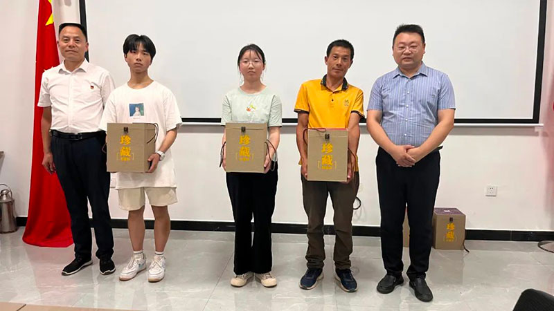 座谈会上,副总经理吴东平给大家介绍了参会来宾和公司领导,邀请大家观看了企业宣传片。洋县招生办主任郑文华宣读了2023年度高考洋县优秀学生名单。随后,洋县招生办主任郑文华、洋县中学校长何卫锋、总经理吕楠超、副总经理吴东平等领导给2023年度高考洋县优秀学生赠送了2.5升封坛原浆古秦洋纪念酒作为奖励。