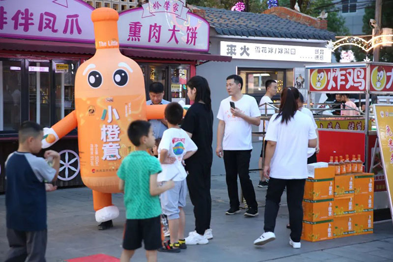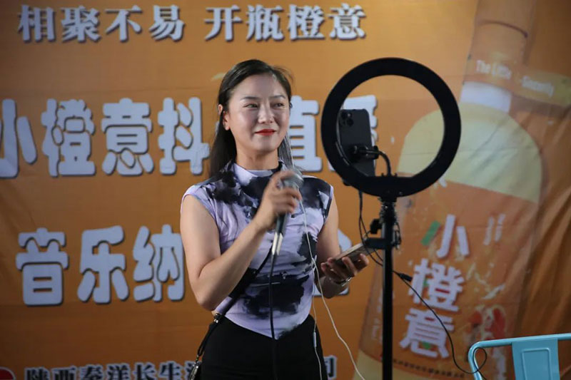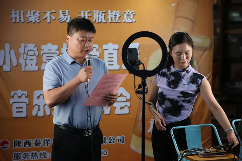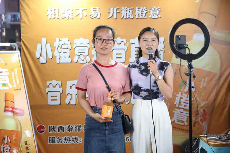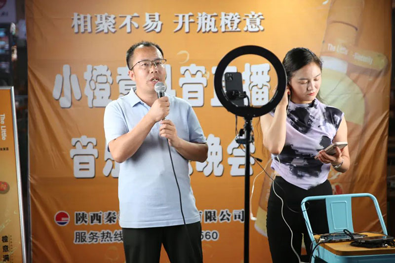 8月11日、12日晚,陕西秦洋长生酒业有限公司举办的“相聚不易,开瓶橙意”小橙意抖音直播音乐纳凉晚会在汉台区饮马池小吃城成功举行。为了全面做好本次宣传推广活动,副总经理张绪春、汉中办事处主任马新文等公司领导、小橙意果味酒汉台区总代理——汉中宏桥商贸总经理肖晓飞亲临现场策划指导。副总经理张绪春在致辞中从产品定位、产品特色等方面,向直播间和现场的消费者隆重推荐小橙意果味酒。汉中宏桥商贸总经理肖晓飞在讲话中,也满怀自信地向大家介绍了小橙意果味酒的诸多卖点。本活动以流行音乐演唱渲染氛围,采用抖音视频直播为线上传播工具,附以小橙意蒙目跳趣味游戏、小橙意丢沙包趣味游戏、小橙意人偶表演、直播间滚动抽奖、观众才艺表演、现场品鉴、特价促销等宣传形式,形成了全方位、立体化、互动性、沉浸式的综合宣传体验效应,深受现场消费者及广大网友们的认可和好评,较好地实现了既定的宣传推广目标。