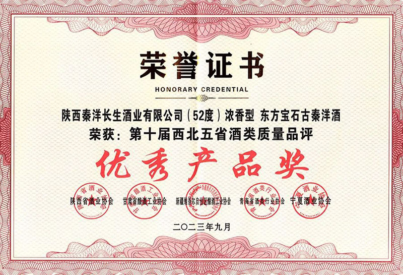 日前,由新疆维吾尔自治区酿酒工业协会、陕西省酒业协会、甘肃省酿酒工业协会、宁夏酒业协会和青海省酒类行业协会共同举办的“西北五省第十届酒类质量品评交流会”在陕西宝鸡成功召开。本次品评交流会共有参评企业80家、参评产品151款,经过专业品评,层层甄选,陕西秦洋长生酒业有限公司生产的东方宝石古秦洋酒、原浆540古秦洋酒双双荣获“第十届西北五省酒类质量品评优秀产品奖”。