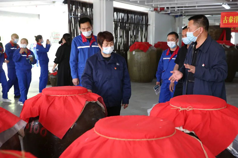 公司党委书记吴东平、副总经理王华、朱红英、张建国、肖钊等领导,陪同来访客人参观了秦洋名酒馆、地下酒库、白酒酿造车间、黄酒发酵车间、谢村黄酒传习所、展销大厅等部门。参观过程中公司讲解人员给客人们介绍了古秦洋酒、谢村黄酒的历史文化、生产工艺及产品特点,并邀请客人们现场品尝了封藏40余年的原浆古秦洋酒和刚压榨出来的原汁谢村黄酒,使大家对古秦洋酒、谢村黄酒有了更深刻的了解和认识。